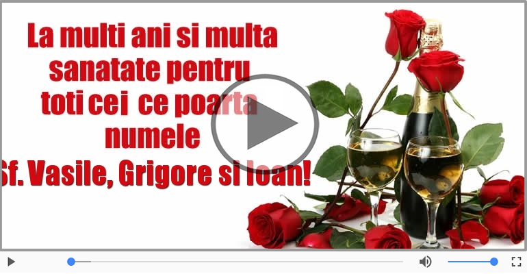 Felicitare muzicala si animata de Sfintii Vasile, Grigore si Ioan. La multi ani si multa sanatate pentru toti cei care se sarbatoresc de Sfintii Vasile, Grigore si Ioan!