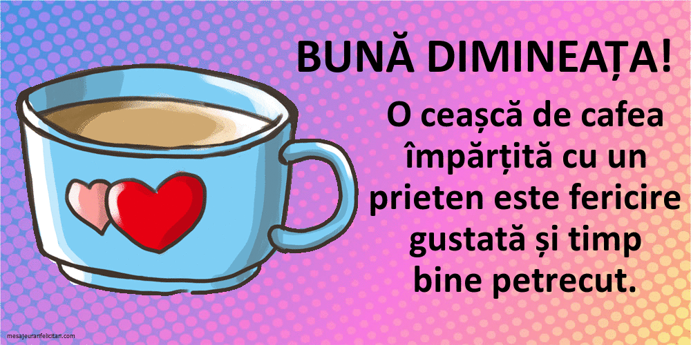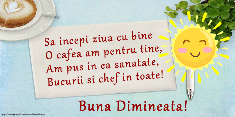 Felicitari animate de buna dimineata - Sa incepi ziua cu bine O cafea am pentru tine, Am pus in ea sanatate, Bucurii si chef in toate! Buna dimineata!