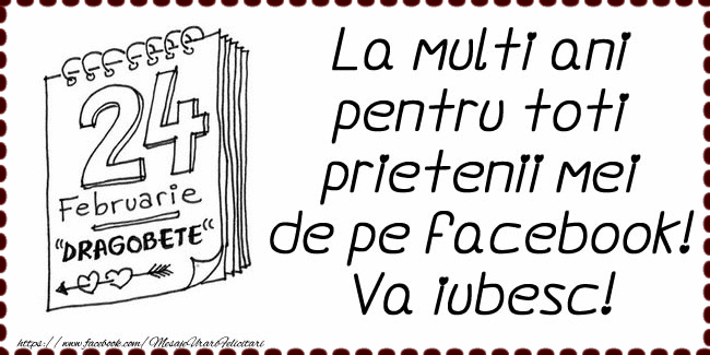 La multi ani pentru toti prietenii mei de pe facebook! Va iubesc! 24 Februarie Dragobete - GIF animat de Dragobete - mesajeurarifelicitari.com