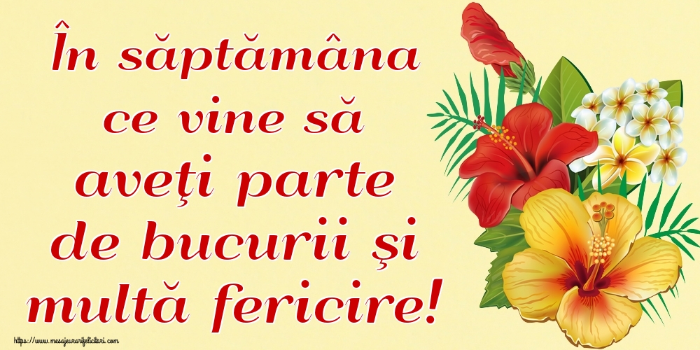 În săptămâna ce vine să aveţi parte de bucurii şi multă fericire!