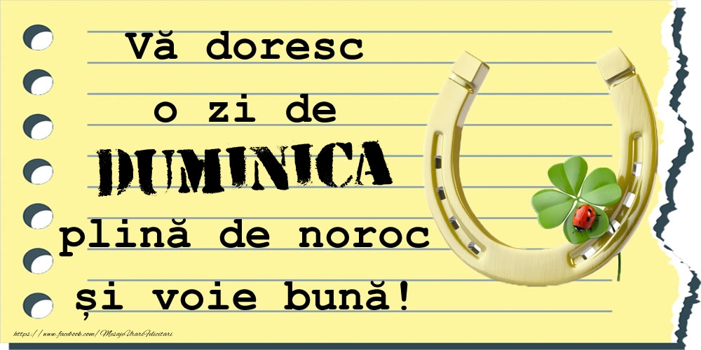 Vă doresc o zi de duminica plină de noroc și voie bună!