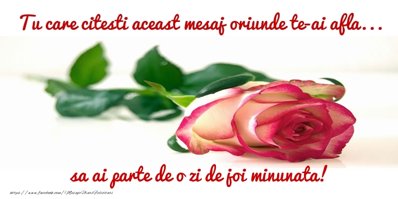 Tu care citesti aceast mesaj oriunde te-ai afla... sa ai parte de o zi de joi minunata!