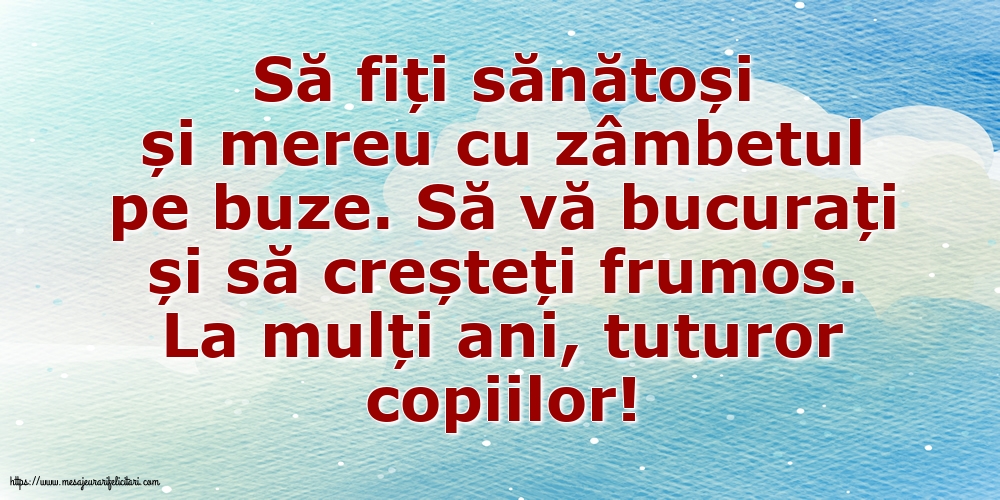 Să fiți sănătoși și mereu cu zâmbetul pe buze. Să vă bucurați și să creșteți frumos.