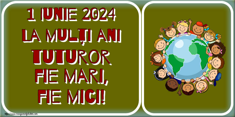 1 Iunie La mulți ani, tuturor copiilor! De la 0 luni la 100 ani! 1 Iunie este cel mai bun prilej de a sarbatori copilaria si copiii, de a le oferi iubirea si aprecierea noastra. Gasiti aici o colectie de felicitari special dedicate copiilor si zilei de 1 Iunie.