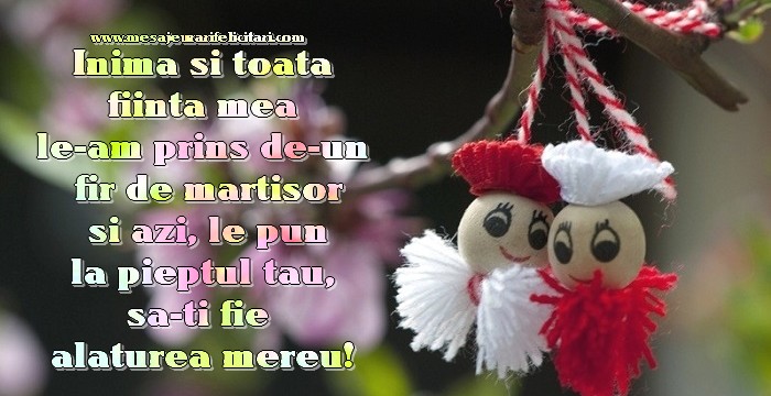 Inima si toata fiinta mea le-am prins de-un fir de martisor si azi, le pun la pieptul tau, sa-ti fie alaturea mereu!