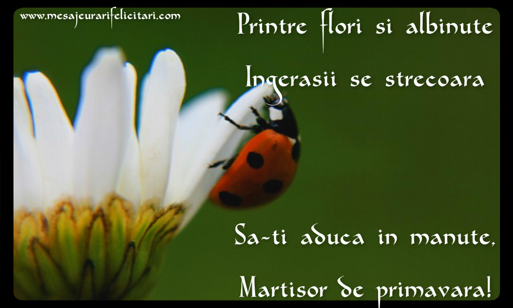 Printre flori si albinute Ingerasii se strecoara Sa-ti aduca in manute, Martisor de primavara!