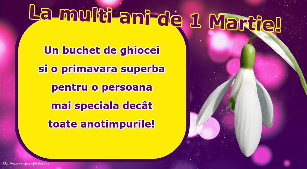 Felicitarea Anterioara Felicitarea Urmatoare 1 Martie (694) Felicitari cu mesaje