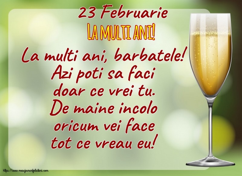 Felicitarea Anterioara Felicitarea Urmatoare 23 Februarie (76) Felicitari cu mesaje Felicitari cu sampanie