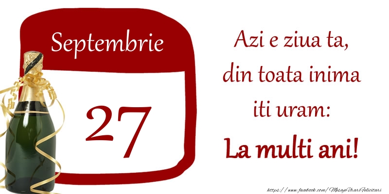 Septembrie 27 Azi e ziua ta, din toată inima îți urăm: LA MULȚI ANI!