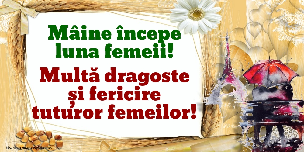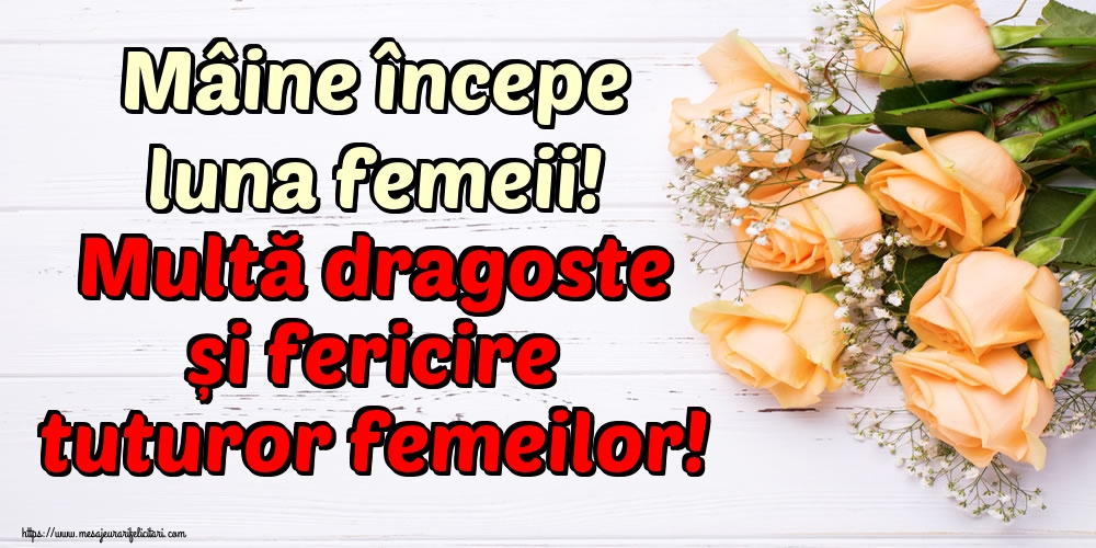 Mâine începe luna femeii! Multă dragoste și fericire tuturor femeilor!