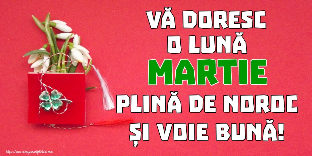 Vă doresc o lună MARTIE plină de noroc și voie bună!