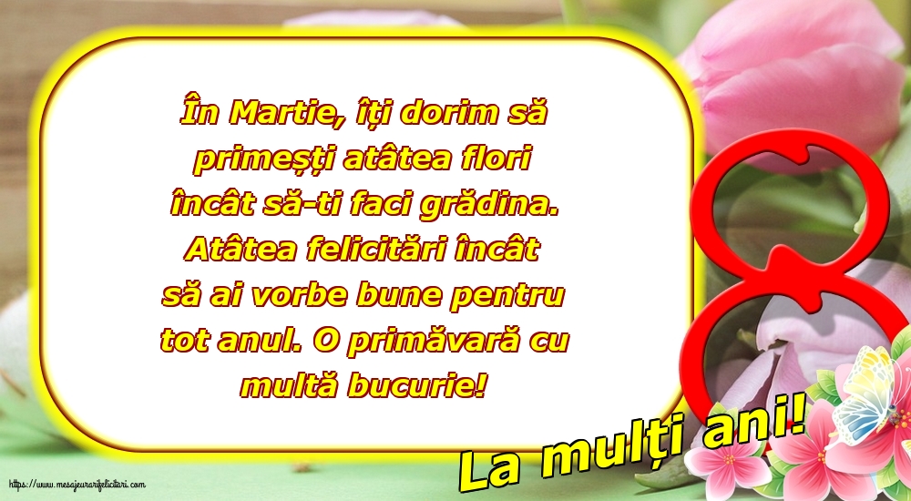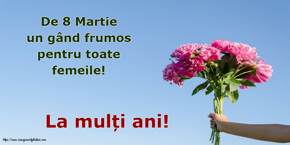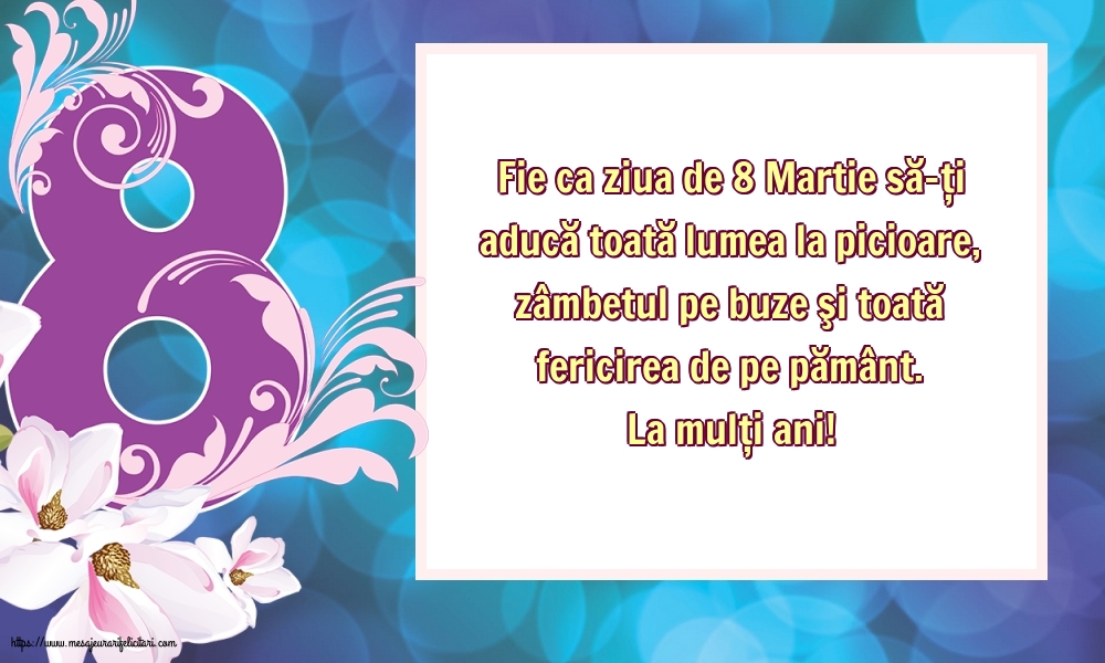 Felicitarea Anterioara Felicitarea Urmatoare 8 Martie (881) Felicitari cu mesaje Felicitari cu flori