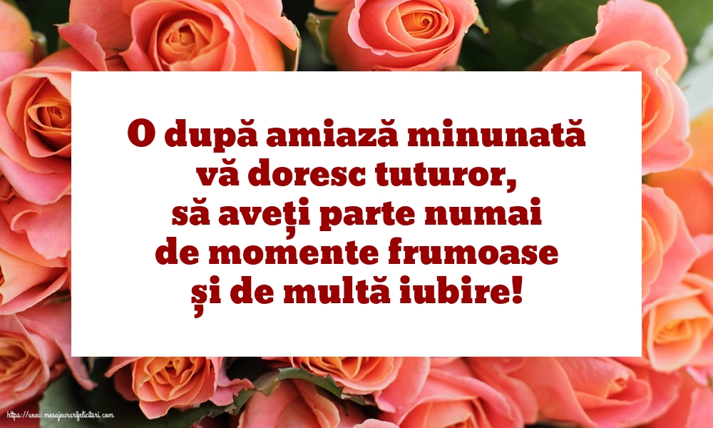 Felicitarea Anterioara Felicitarea Urmatoare Amiaza (855) Felicitari cu mesaje
