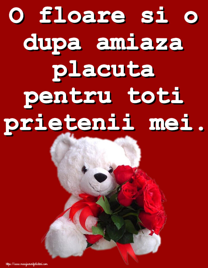 Tuturor prietenilor de pe pagina mea va doresc: O dupa amiaza superba! Felicitari de amiaza, imagini pe care le poti trimite la amiaza sau pranz prietenilor si familiei. O după amiază plăcută!