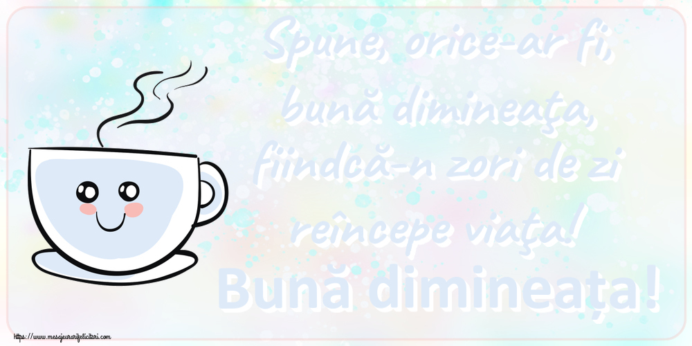 Spune, orice-ar fi, bună dimineaţa, fiindcă-n zori de zi reîncepe viaţa! Bună dimineața! ~ cană de cafea simpatică