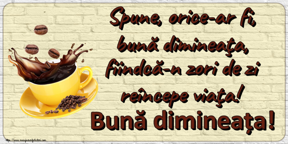 Spune, orice-ar fi, bună dimineaţa, fiindcă-n zori de zi reîncepe viaţa! Bună dimineața! ~ cafea boabe