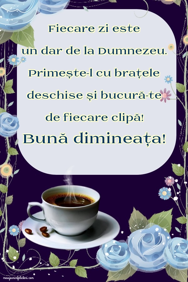 Fiecare zi este un dar de la Dumnezeu. Primește-l cu brațele deschise și bucură-te de fiecare clipă! Bună dimineața!