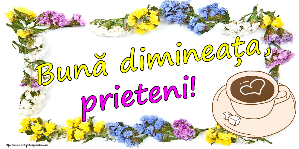 Felicitari de buna dimineata - Bună dimineața, prieteni! ~ desen cu cană de cafea cu inimioară