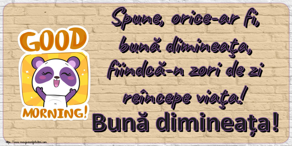 Spune, orice-ar fi, bună dimineaţa, fiindcă-n zori de zi reîncepe viaţa! Bună dimineața!