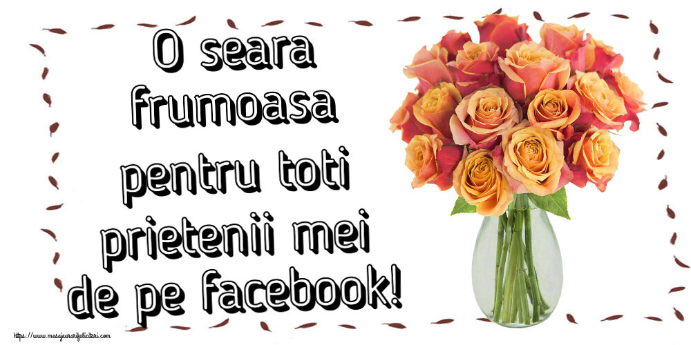 Descarca felicitarea - Felicitari de buna seara - O seara frumoasa pentru toti prietenii mei de pe facebook! ~ vază cu trandafiri - mesajeurarifelicitari.com