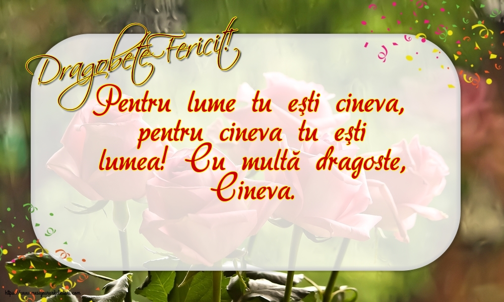 Pentru lume tu eşti cineva, pentru cineva tu eşti lumea! Cu multă dragoste, Cineva.