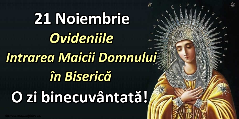 21 Noiembrie Ovideniile Intrarea Maicii Domnului în Biserică O zi binecuvântată! Felicitari si imagini de Intrarea Maicii Domnului în Biserică - 21 Noiembrie.