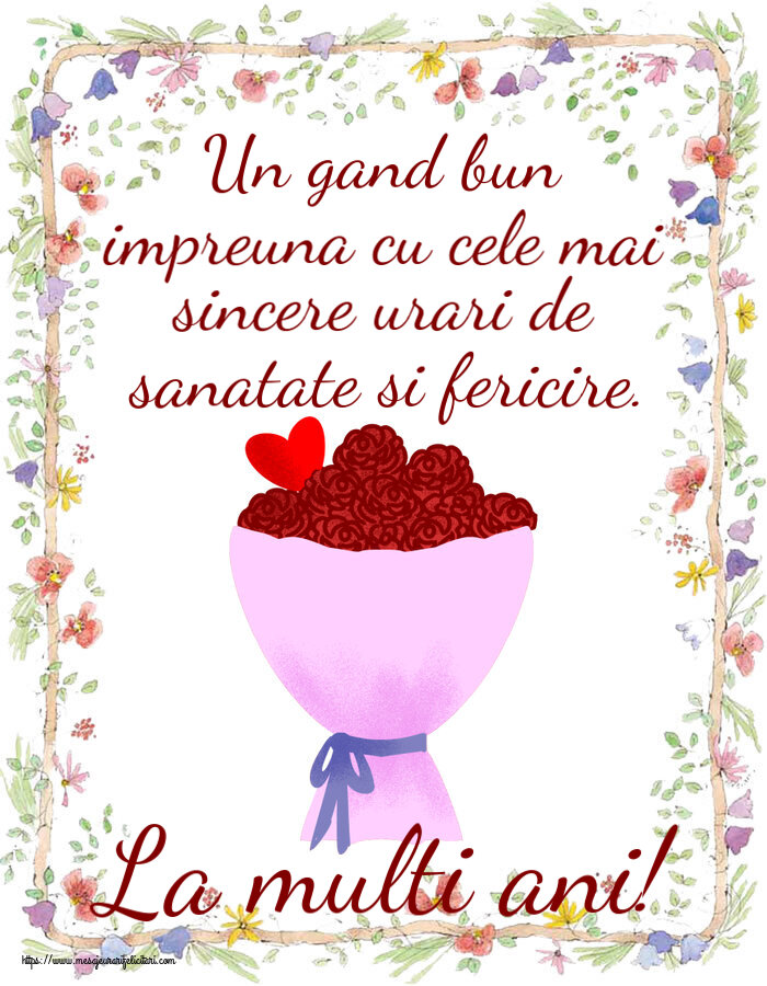 Un gand bun impreuna cu cele mai sincere urari de sanatate si fericire. La multi ani! ~ flori si inimioara clipart
