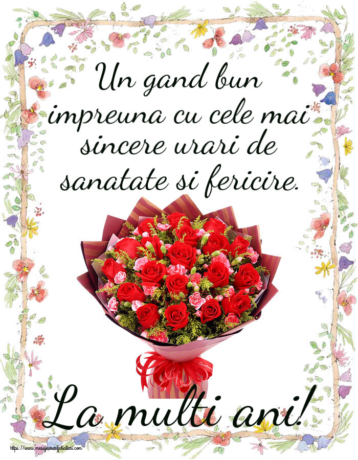 Un gand bun impreuna cu cele mai sincere urari de sanatate si fericire. La multi ani! ~ trandafiri roșii și garoafe