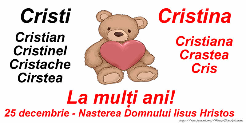 La multi ani pentru toti prietenii mei de pe facebook care poarta numele Cristi si Cristina!