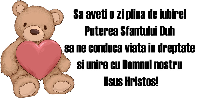 Sa aveti o zi plina de iubire! Puterea Sfantului Duh sa ne conduca viata in dreptate si unire cu Domnul nostru Iisus Hristos!