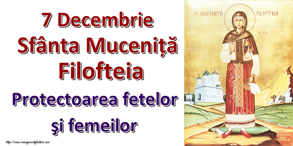 7 Decembrie Sfânta Muceniță Filofteia să vă ocrotească cu duhul ei cel sfânt! Felicitari si imagini de Sfânta Muceniță Filofteia - 7 Decembrie.
