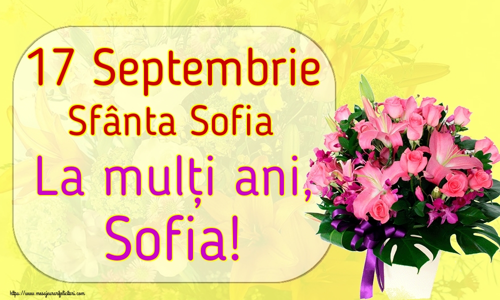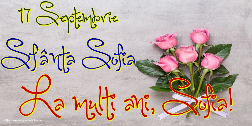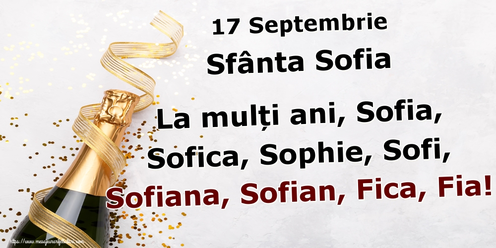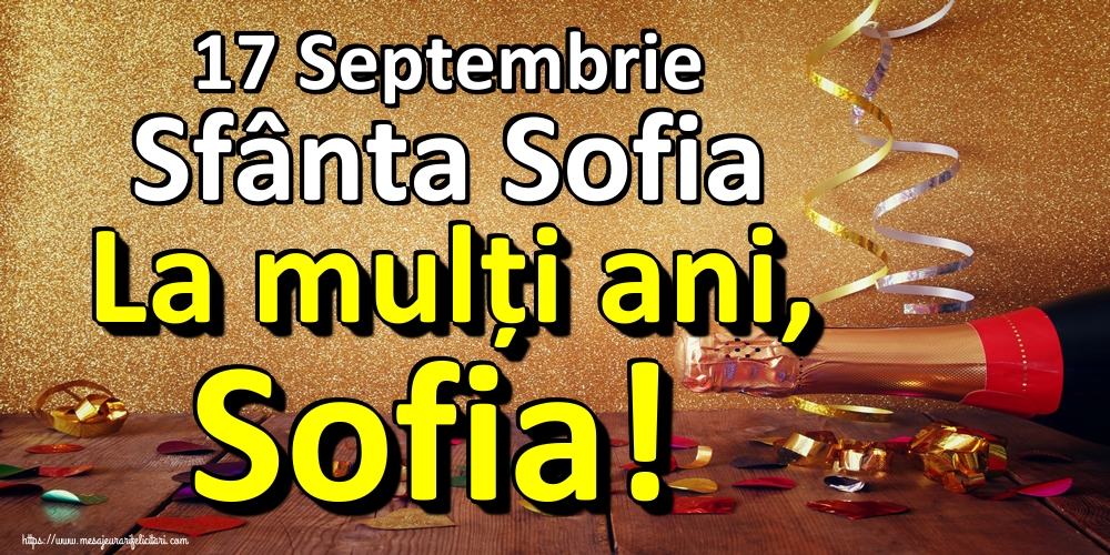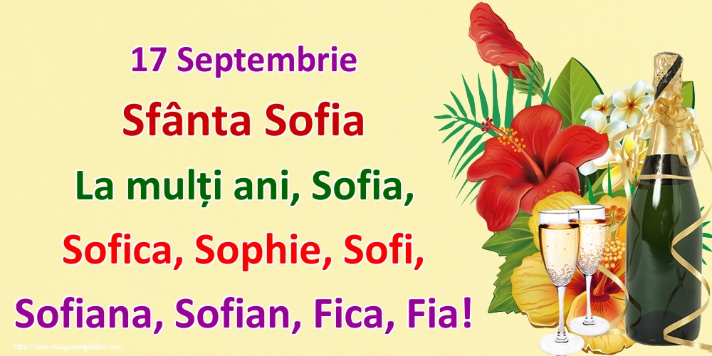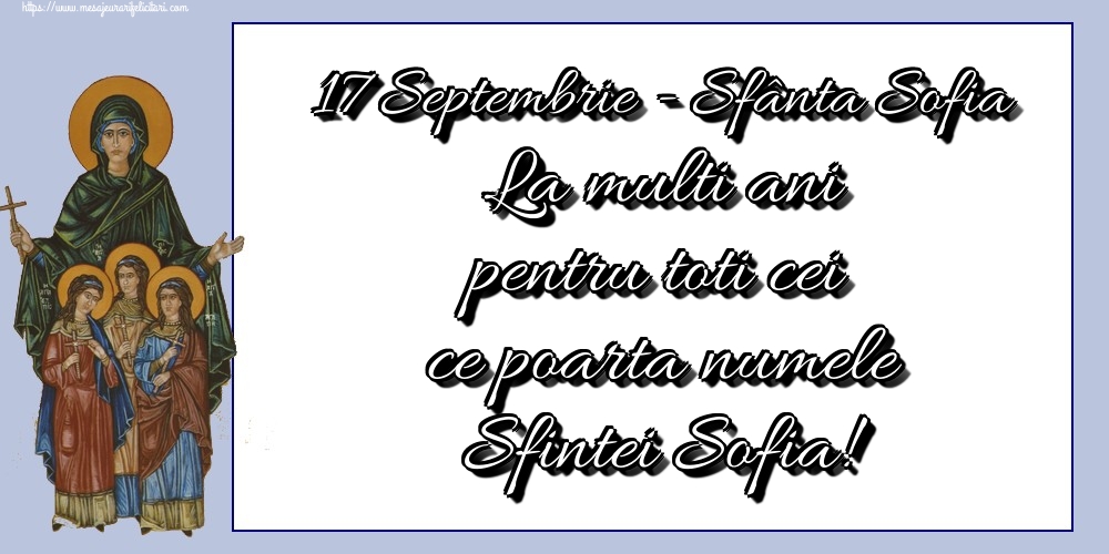 17 Septembrie Sfânta Sofia La mulți ani, Sofia, Sofica, Sophie, Sofi, Sofiana, Sofian, Fica, Fia!