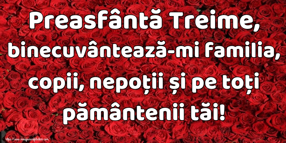 Felicitari de Sfânta Treime - Preasfântă Treime, ai grijă te rog de copiii mei. Dă-le sănătate și ocrotește-i de orice primejdie. - mesajeurarifelicitari.com