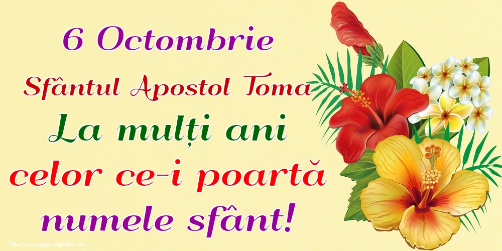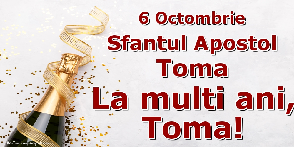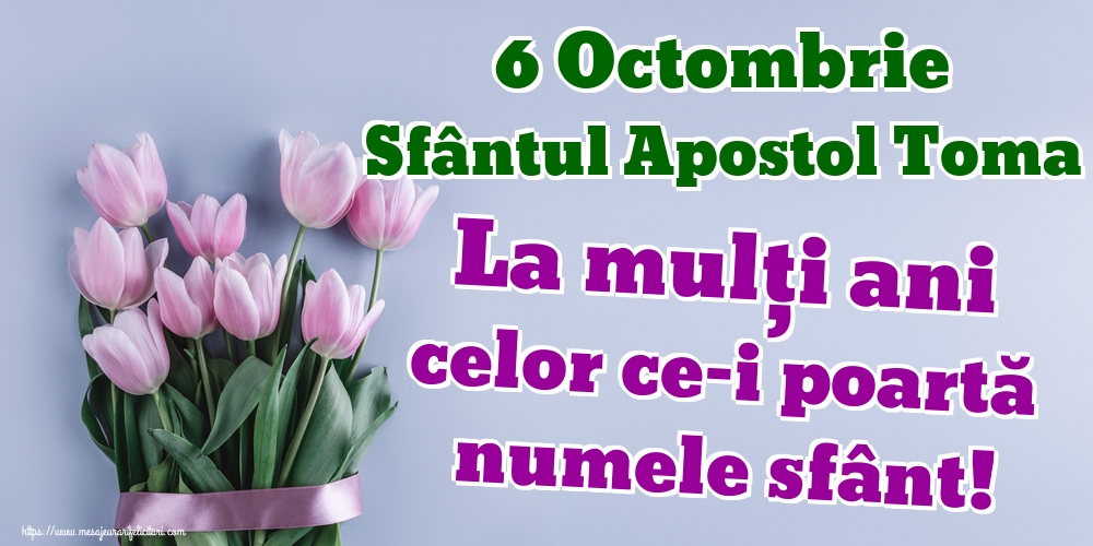 6 Octombrie Sfântul Apostol Toma La mulți ani celor ce-i poartă numele sfânt! Felicitari si imagini de Sfântul Apostol Toma - 6 Octombrie.