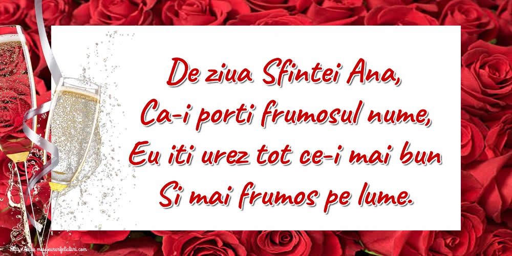 Descarca felicitarea - Felicitari de Sfanta Ana - De ziua Sfintei Ana, Ca-i porti frumosul nume, Eu iti urez tot ce-i mai bun Si mai frumos pe lume. - mesajeurarifelicitari.com