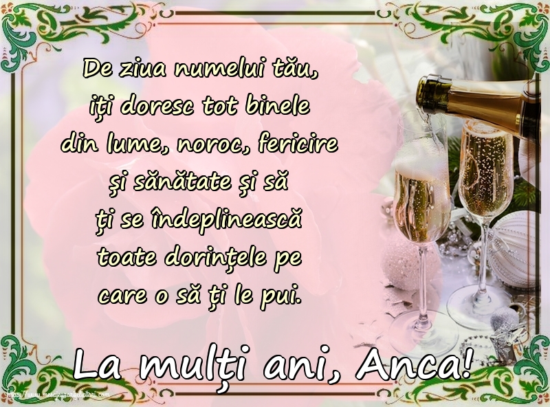 Îți urez La Mulți Ani, pentru că porţi acest nume. Fie ca Sfanta Ana pe care îl reprezinţi, să-și coboare ochii asupra ta și să îți dăruiască fericirea dorită și liniştea interioară.