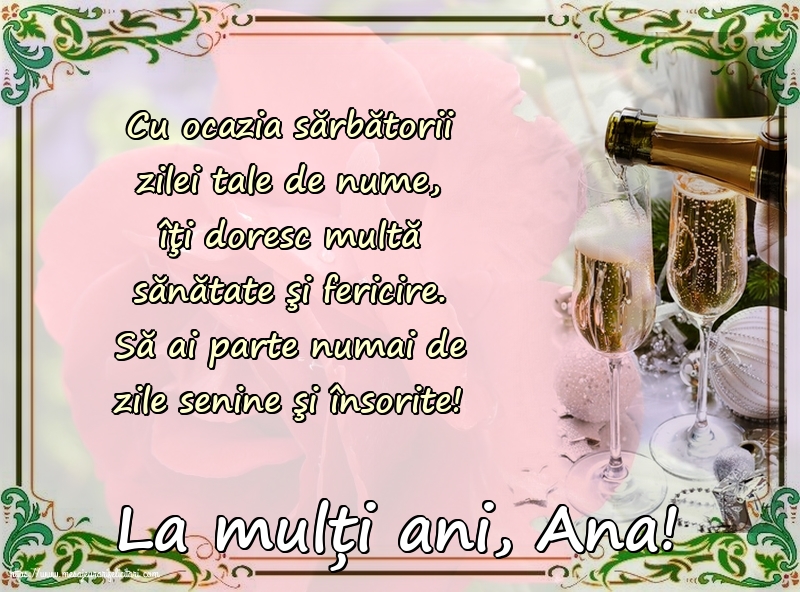 De ziua Sfintei Ana, Ca-i porti frumosul nume, Eu iti urez tot ce-i mai bun Si mai frumos pe lume.