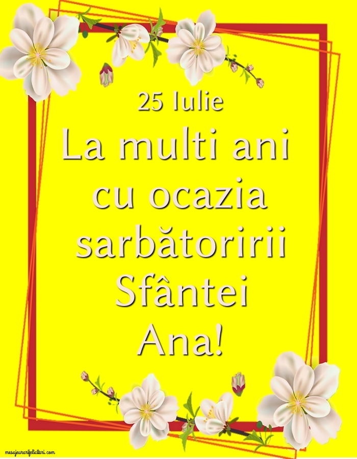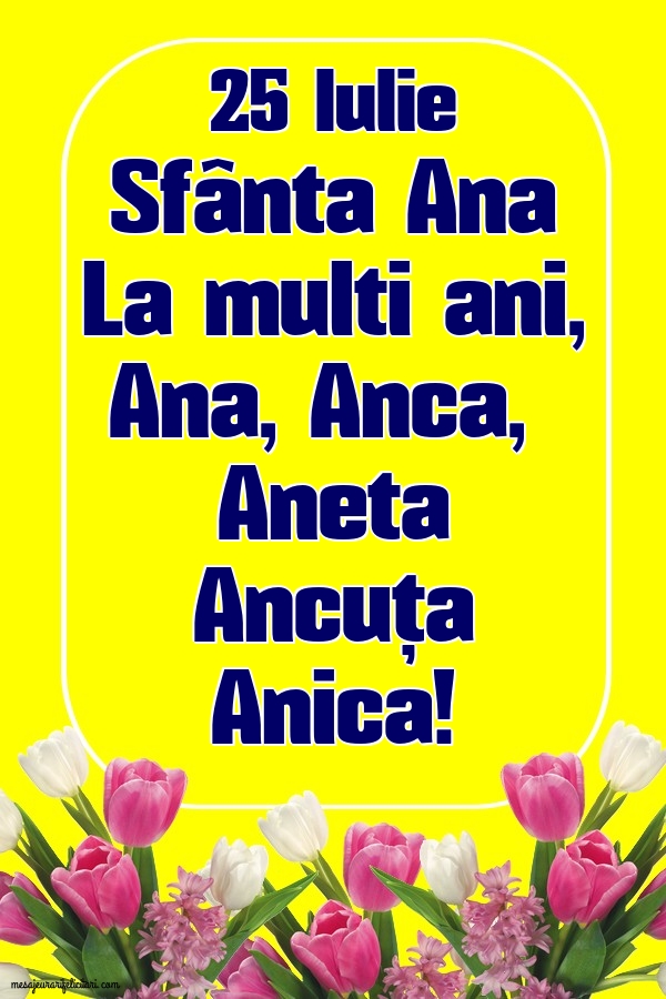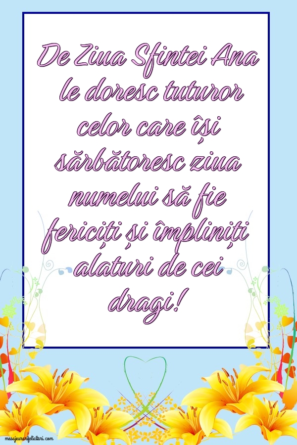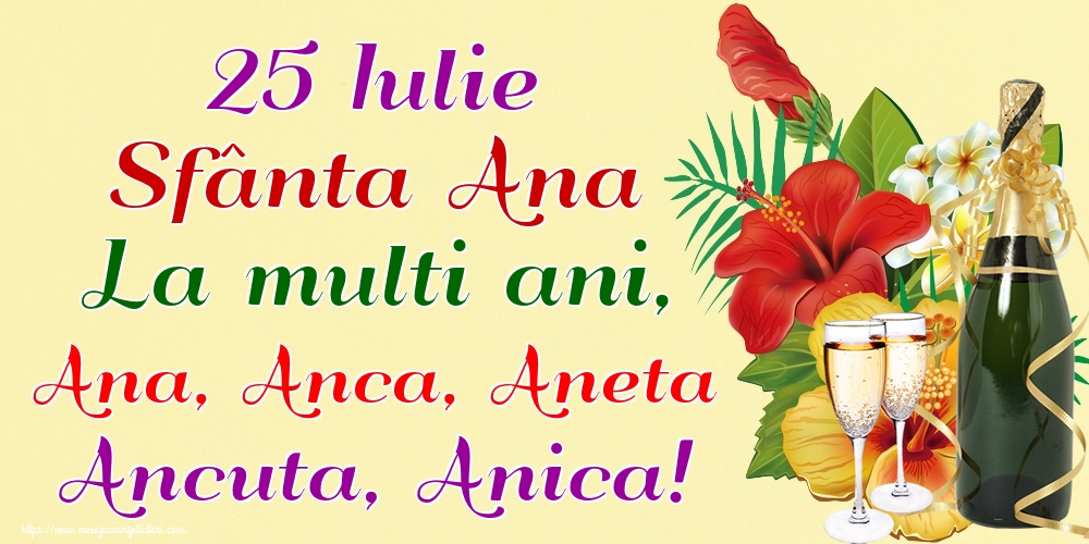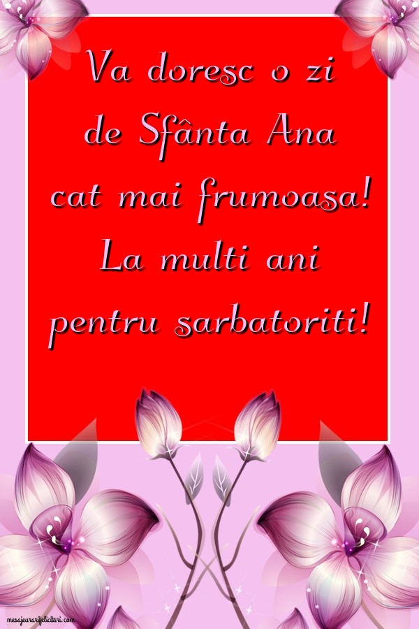 Aici gasiti felicitari de Sfanta Ana, felicitari pentru cei care poarte numele Sfintei Ana - 25 Iulie