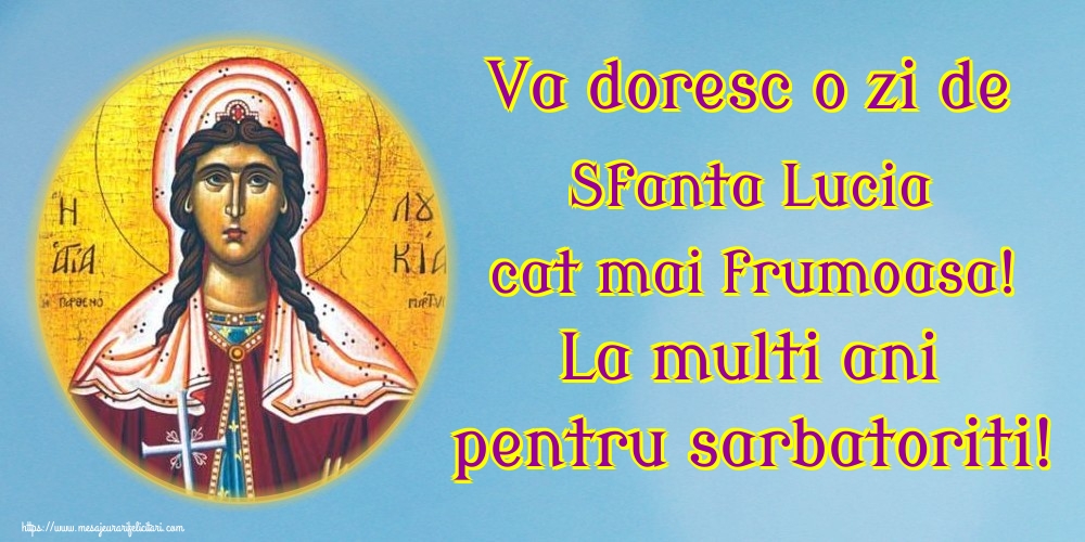 Va doresc o zi de Sfanta Lucia cat mai frumoasa! La multi ani pentru sarbatoriti!