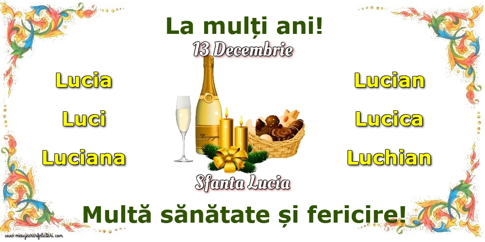 Fie ca Sf. Lucia, sa te ocroteasca, sa-ti calauzeasca pasii si sa-ti lumineze calea. La multi ani!