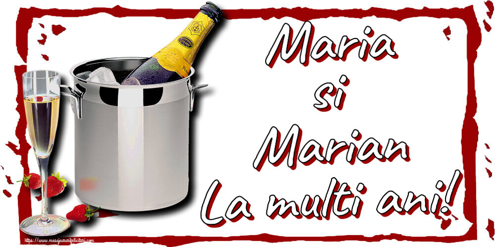 Descarca felicitarea - Felicitari de Sfanta Maria - Maria si Marian La multi ani! ~ șampanie în frapieră și căpșuni - mesajeurarifelicitari.com