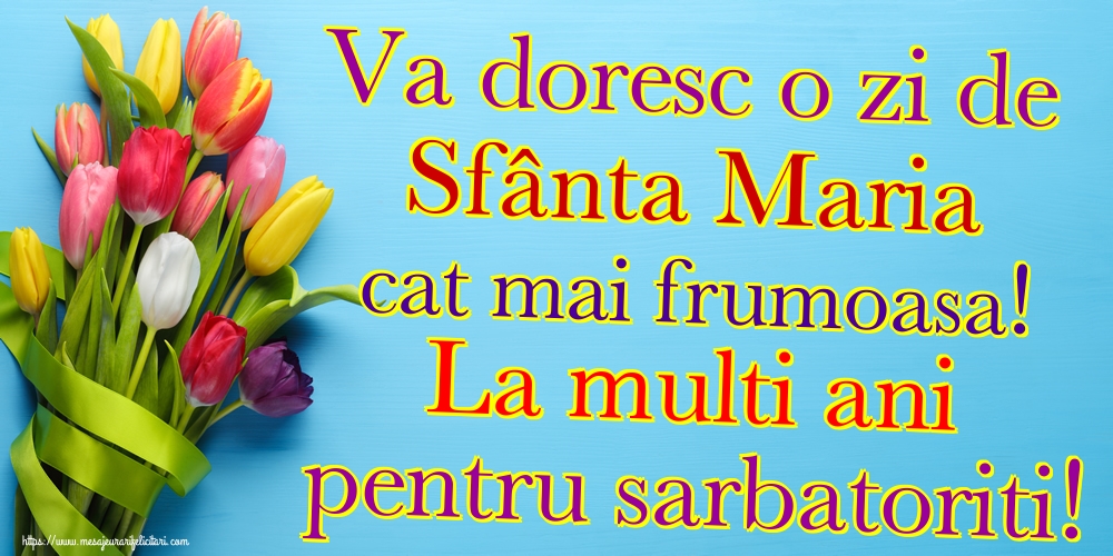 Descarca felicitarea - Felicitari de Sfanta Maria - Va doresc o zi de Sfânta Maria cat mai frumoasa! La multi ani pentru sarbatoriti! - mesajeurarifelicitari.com