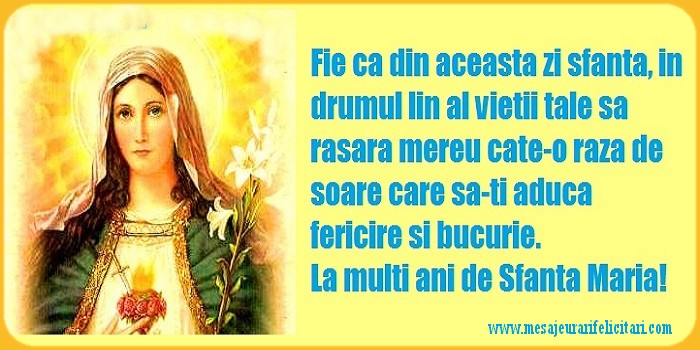 Felicitarea Anterioara Felicitarea Urmatoare Sfanta Maria Mare (580) Felicitari cu Fecioara Maria