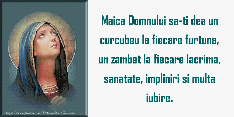 Maica Domnului sa-ti dea un curcubeu la fiecare furtuna, un zambet la fiecare lacrima, sanatate, impliniri si multa iubire.