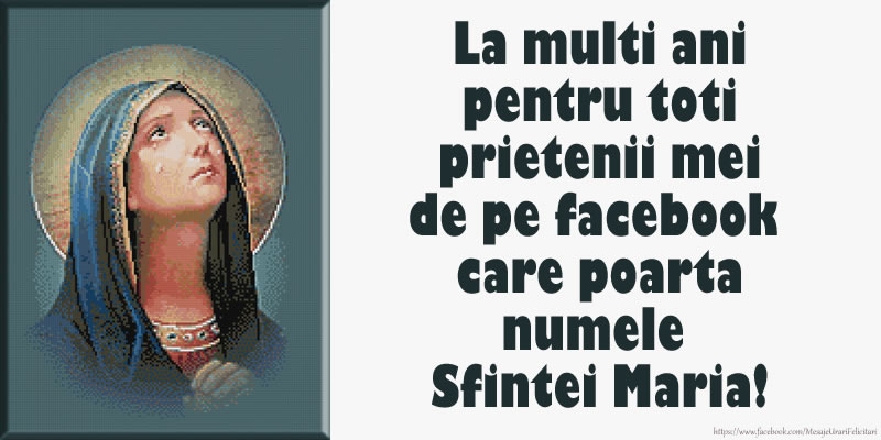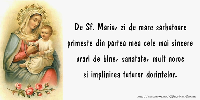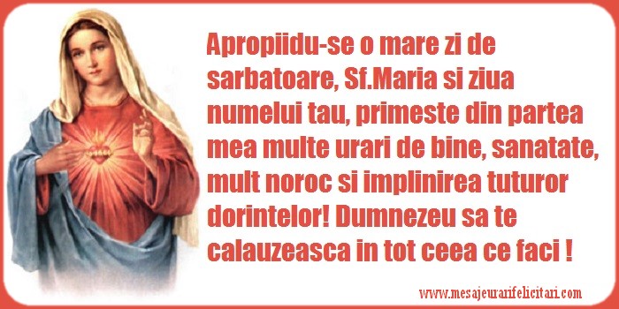 Felicitarea Anterioara Felicitarea Urmatoare Sfanta Maria Mare (580) Felicitari cu Fecioara Maria
