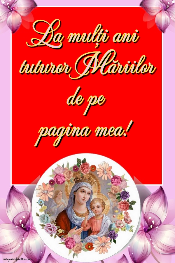 La multi ani pentru toti prietenii mei de pe facebook care poarta numele Sfintei Maria!