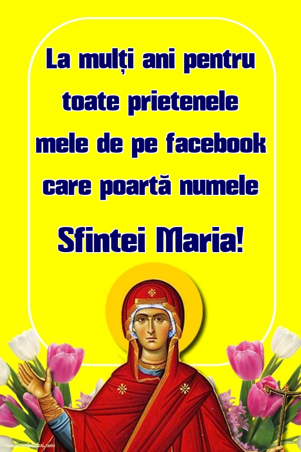 La mulți ani pentru toate prietenele mele de pe facebook care poartă numele Sfintei Maria!