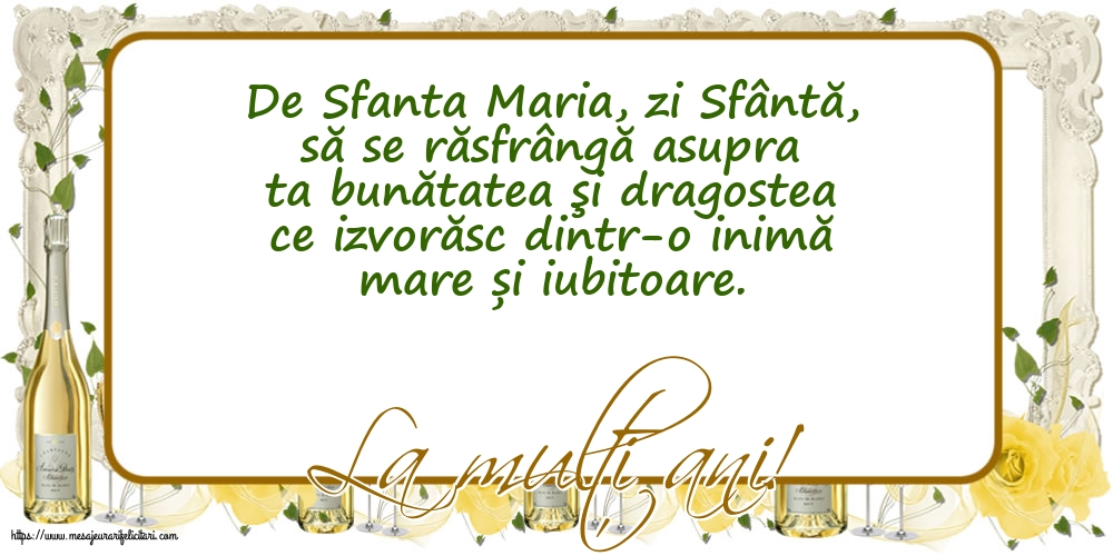 De Sfanta Maria, zi Sfântă, să se răsfrângă asupra ta bunătatea şi dragostea ce izvorăsc dintr-o inimă mare și iubitoare.