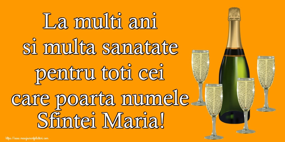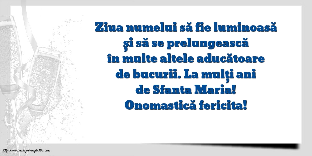 Ziua numelui să fie luminoasă și să se prelungească în multe altele aducătoare de bucurii. La mulți ani de Sfanta Maria!