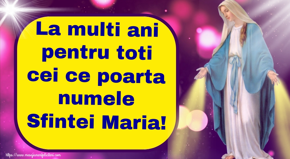 La multi ani pentru toti cei ce poarta numele Sfintei Maria! Felicitari de Sfanta Maria Mica, felicitari de 8 Septembrie - Nasterea Maicii Domnului.